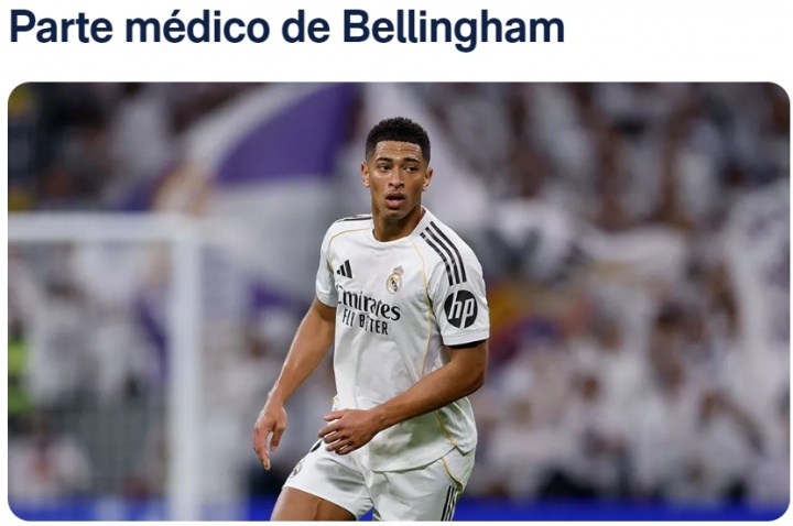 皇马官方:贝林厄姆左侧大腿半腱肌损伤,伤情恢复待进一步观察